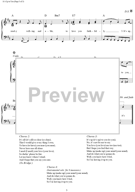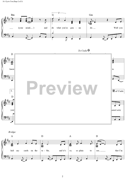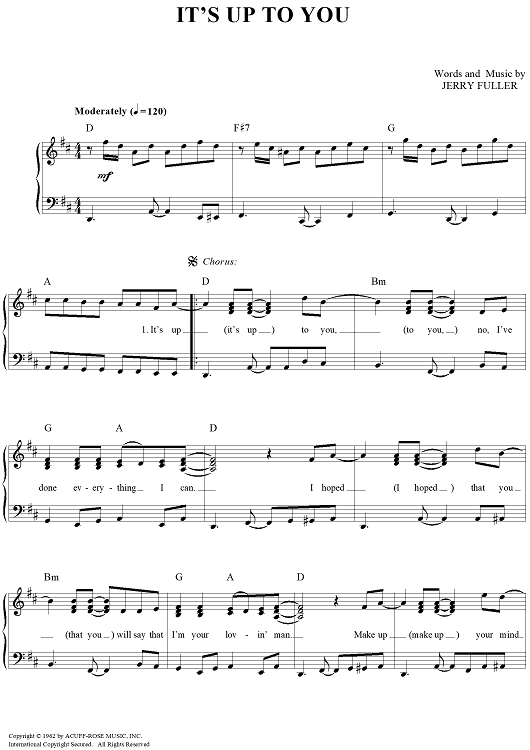 Digital Sheet Music for It's Up to You by Ricky Nelson, Jerry Fuller scored for Piano/Vocal/Chords; id:120749