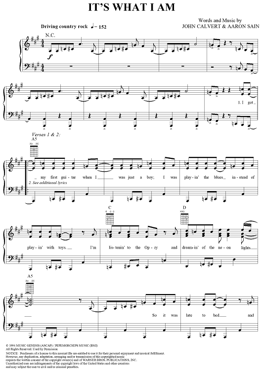 Digital Sheet Music for It's What I Am by John Michael Montgomery, John Calvert, Aaron Sain scored for Piano/Vocal/Chords; id:273333