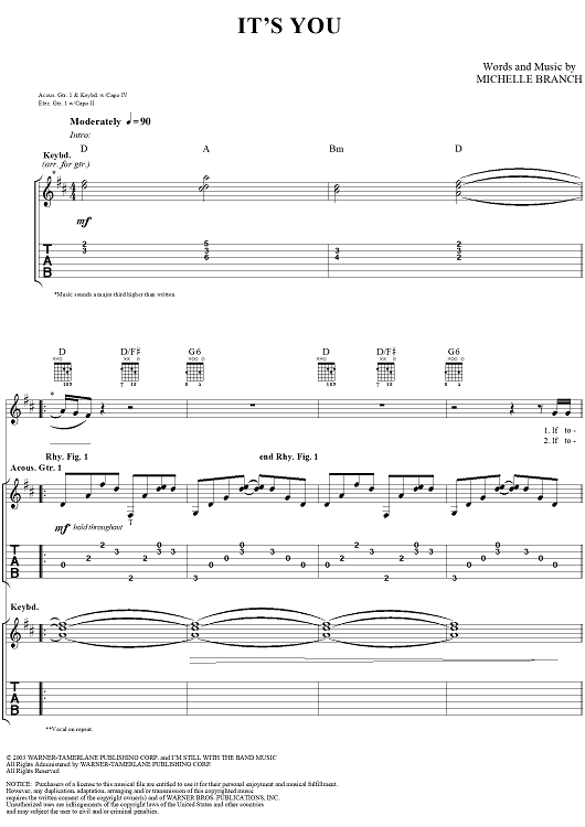 "It's You" Sheet Music by Michelle Branch