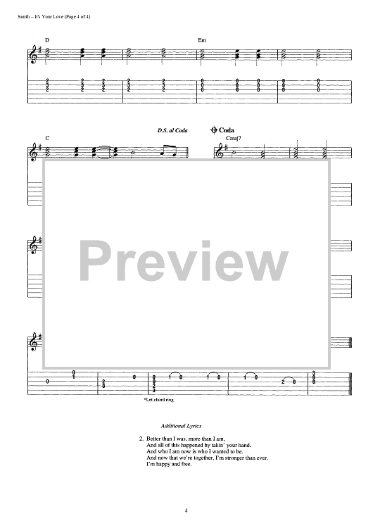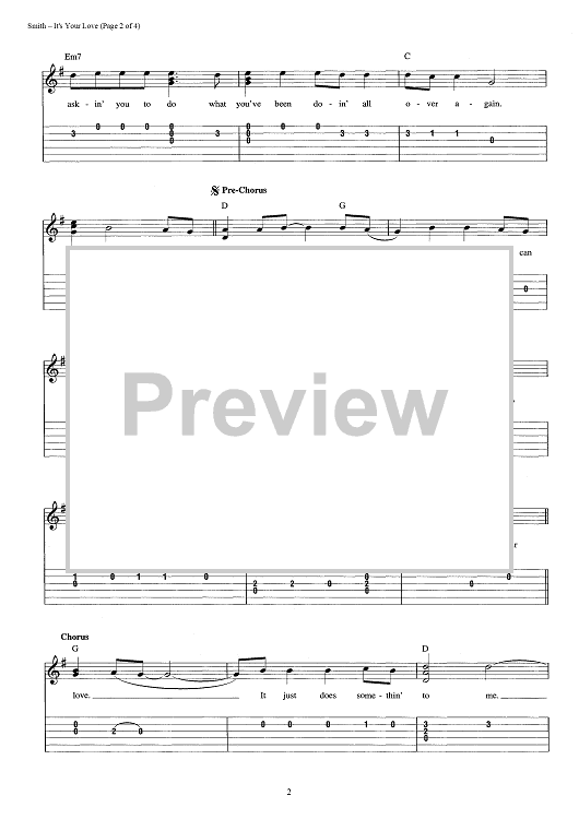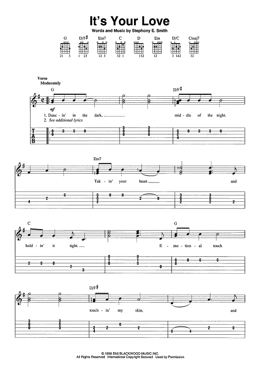 Digital Sheet Music for It's Your Love by Tim McGraw, Faith Hill, Stephony E. Smith scored for Easy Guitar Tab/Vocal; id:392985