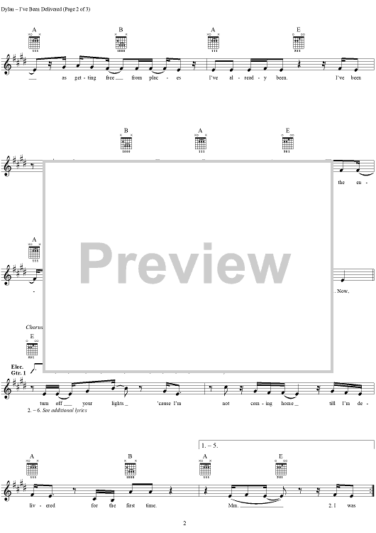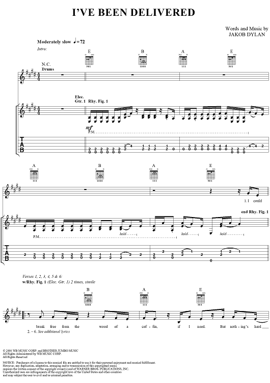 Digital Sheet Music for I've Been Delivered by Jakob Dylan, The Wallflowers scored for Guitar Tab/Vocal; id:286869