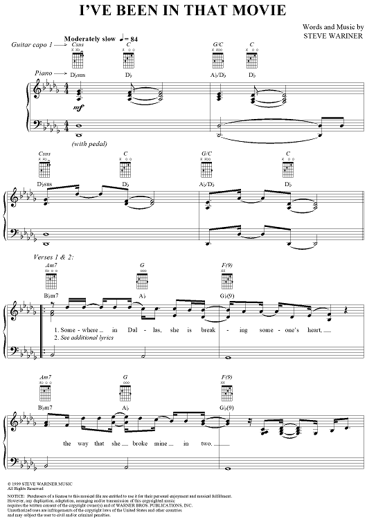 Digital Sheet Music for I've Been in That Movie by Steve Wariner scored for Piano/Vocal/Chords; id:220407