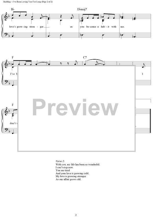 Digital Sheet Music for I've Been Loving You Too Long by Otis Redding, Jerry Butler scored for Piano/Vocal/Chords; id:255702