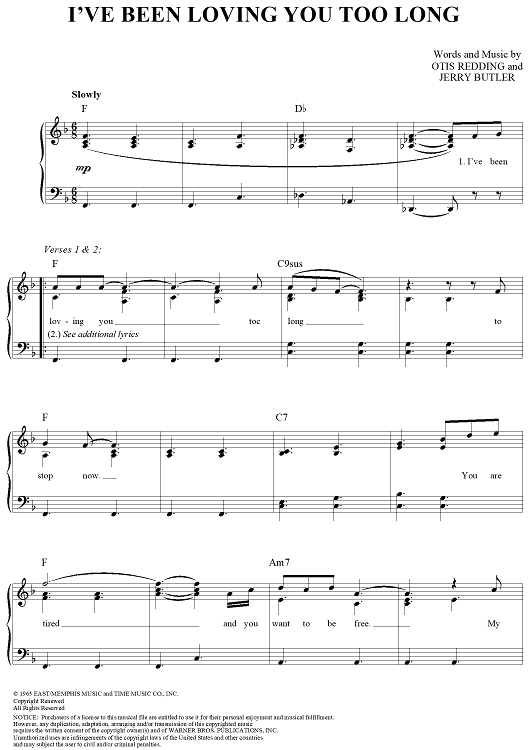 "I've Been Loving You Too Long" Sheet Music by Otis Redding
