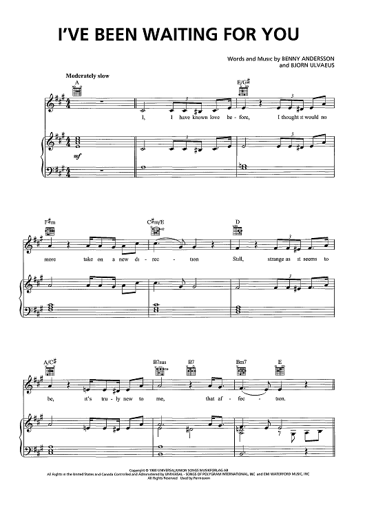 Digital Sheet Music for I've Been Waiting For You by ABBA, Benny Andersson, Bjorn Ulvaeus scored for Piano/Vocal/Chords; id:466718