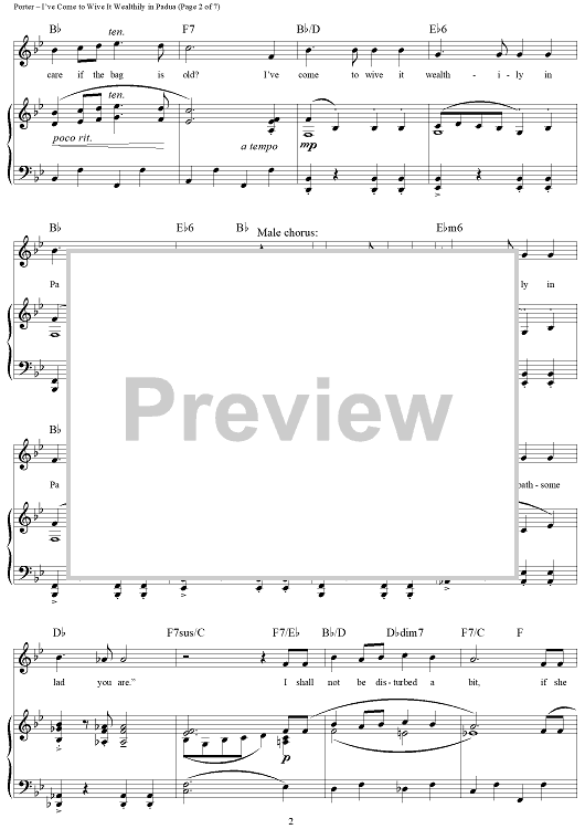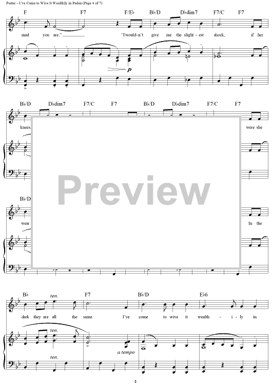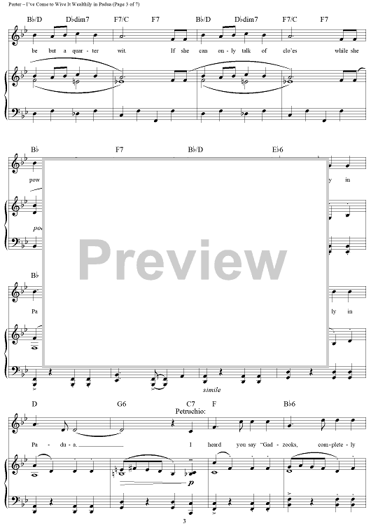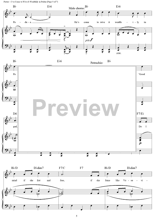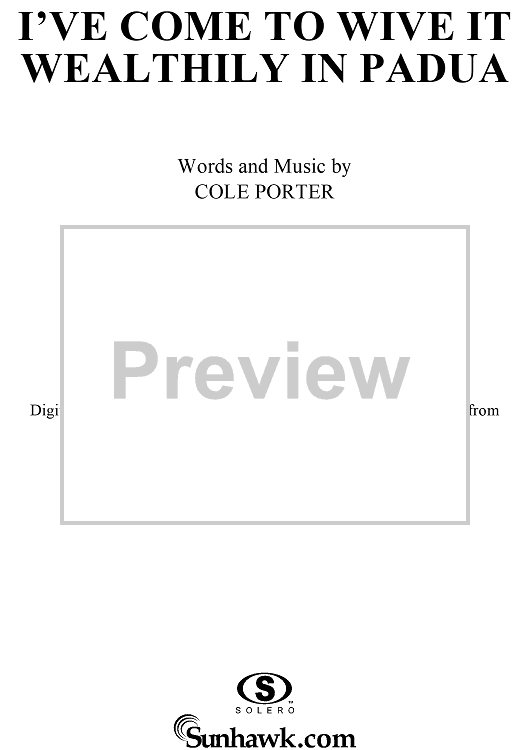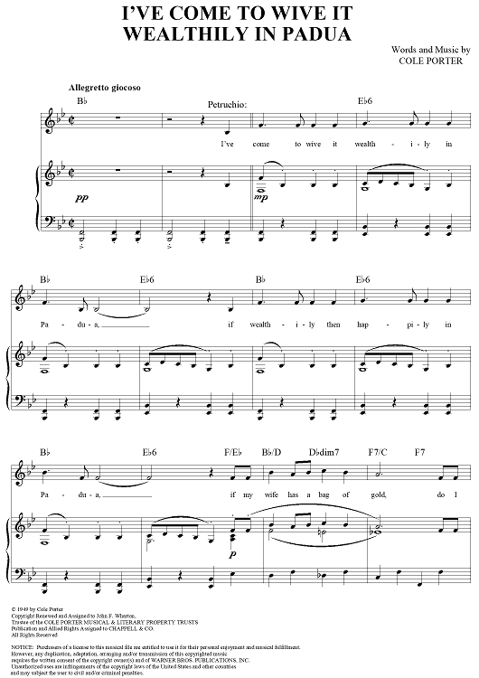 Digital Sheet Music for I've Come to Wive It Wealthily in Padua by Cole Porter scored for Piano/Vocal/Chords; id:297858