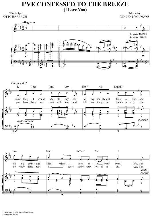 "I've Confessed to the Breeze (I Love You)" Sheet Music by Vincent Youmans