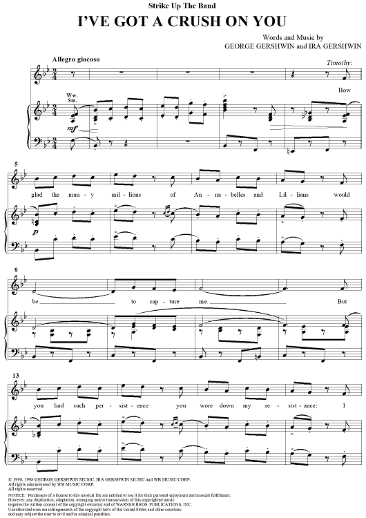 Digital Sheet Music for I've Got a Crush on You by Frank Sinatra, George Gershwin, Ira Gershwin, Michael Buble, Barbra Streisand scored for Piano/Vocal/Chords; id:240654