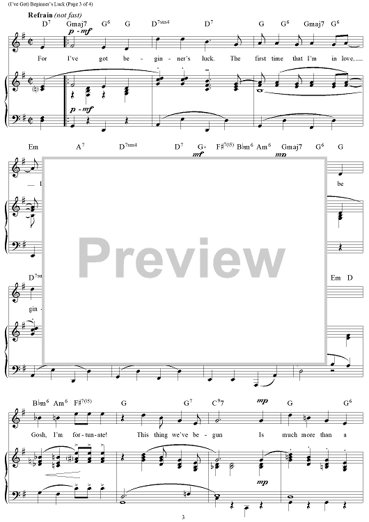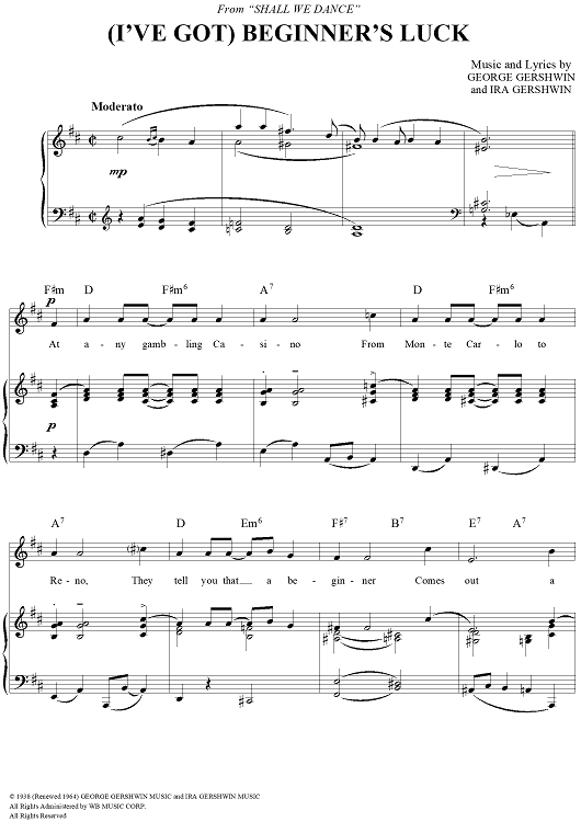 Digital Sheet Music for (I've Got) Beginner's Luck by George Gershwin, Ira Gershwin, Fred Astaire scored for Piano/Vocal/Chords; id:109229