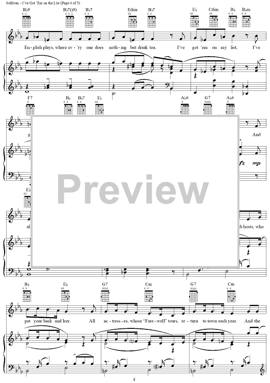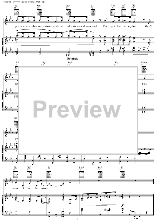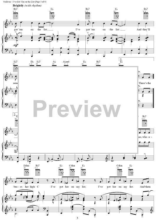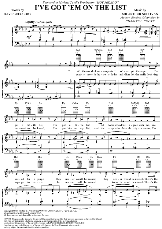 Digital Sheet Music for I've Got 'Em on the List by Doc Cook, Arthur Sullivan, Dave Greggory scored for Piano/Vocal/Chords; id:362440