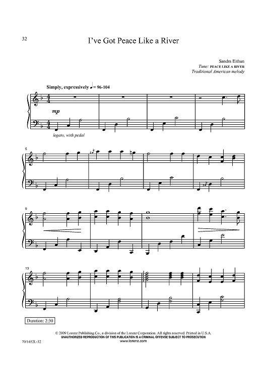 Digital Sheet Music for I've Got Peace Like a River by Traditional American Melody, Sandra Eithun scored for Piano Solo; id:434046