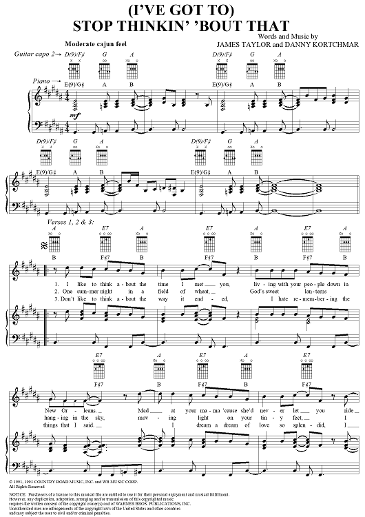 Digital Sheet Music for (I've Got To) Stop Thinkin' 'Bout That by James Taylor, Danny Kortchmar scored for Piano/Vocal/Chords; id:286044