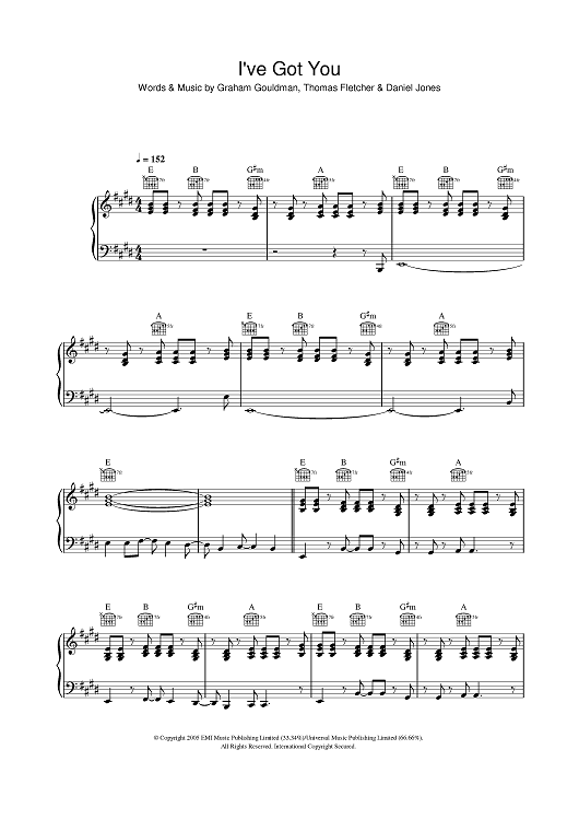 Digital Sheet Music for I've Got You by Daniel Jones, Graham Gouldman, Tom Fletcher, McFly scored for Piano/Vocal/Chords; id:386881