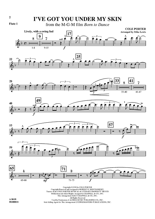 Digital Sheet Music for I've Got You Under My Skin - from the M-G-M film Born to Dance - Flute 1 by Mike Lewis, Cole Porter scored for Full Orchestra; id:458759
