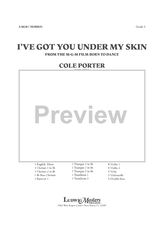 Digital Sheet Music for I've Got You Under My Skin - from the M-G-M film Born to Dance - Score by Mike Lewis, Cole Porter scored for Full Orchestra; id:458758