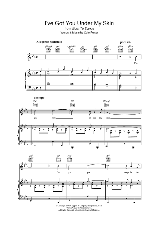 Digital Sheet Music for I've Got You Under My Skin by Frank Sinatra, Ella Fitzgerald, Diana Krall, Dinah Washington, Cole Porter, Michael Buble scored for Piano/Vocal/Chords; id:397704