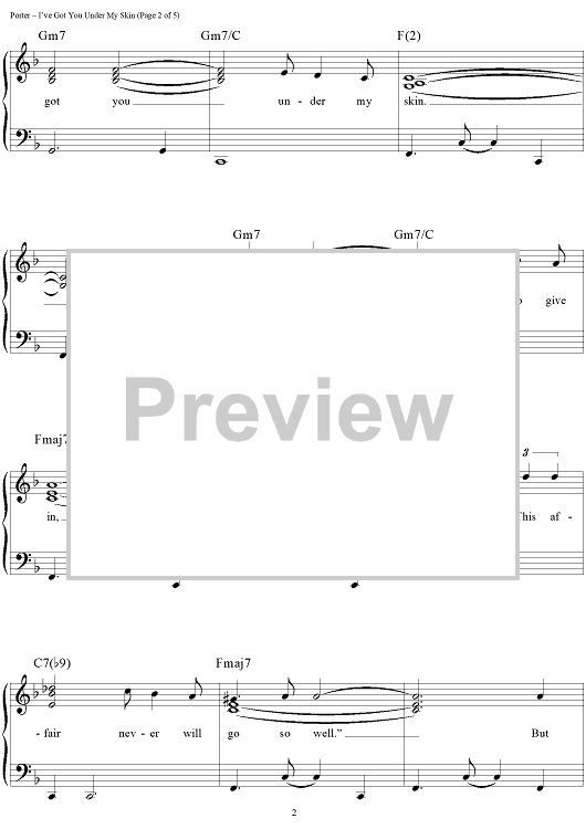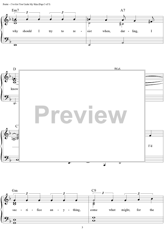 Digital Sheet Music for I've Got You Under My Skin by Cole Porter scored for Easy Piano/Vocal/Chords; id:433086