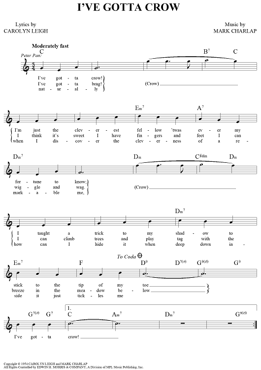 Digital Sheet Music for I've Gotta Crow by Carolyn Leigh, Mark Charlap scored for Lead Sheet; id:453345