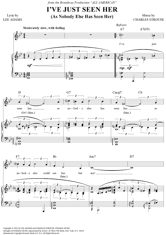 Digital Sheet Music for I've Just Seen Her (As Nobody Else Has Seen Her) by Charles Strouse, Lee Adams scored for Piano/Vocal/Chords; id:259346