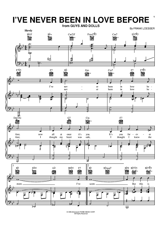 Digital Sheet Music for I've Never Been In Love Before by Bing Crosby, Chet Baker, Stan Kenton, Billy Eckstine, Frank Loesser scored for Piano/Vocal/Chords; id:386541