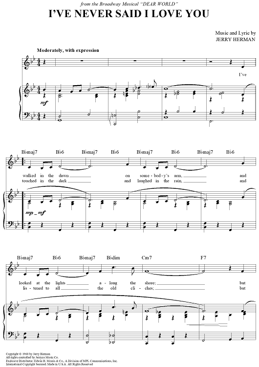 "I've Never Said I Love You" Sheet Music by Jerry Herman