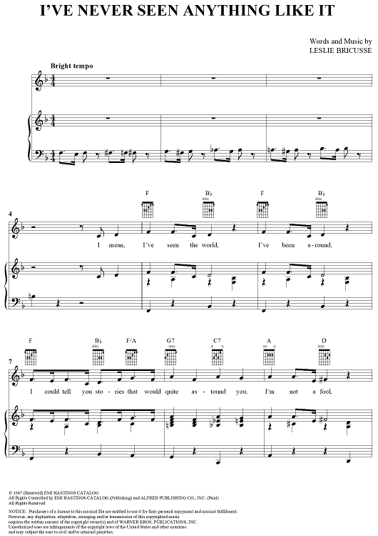 Digital Sheet Music for I've Never Seen Anything Like It by Leslie Bricusse scored for Piano/Vocal/Chords; id:362821