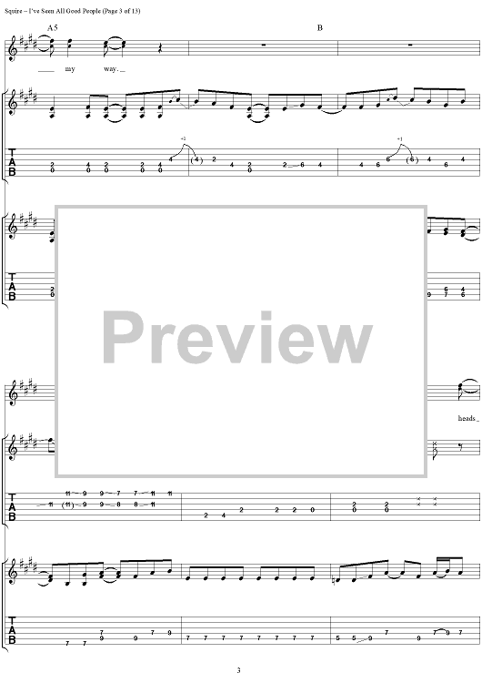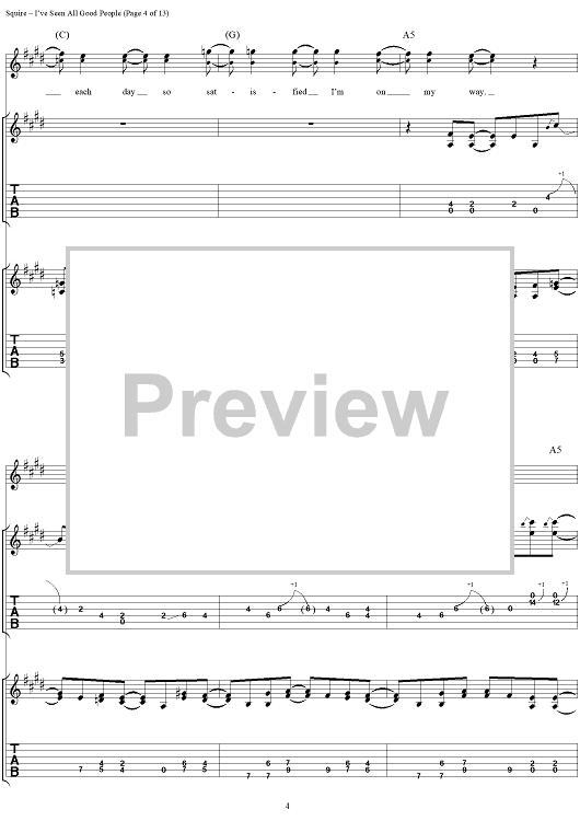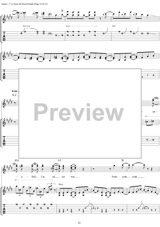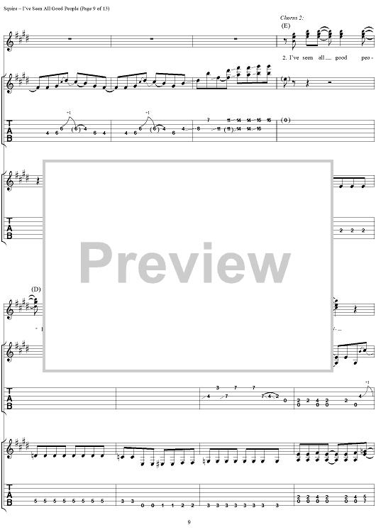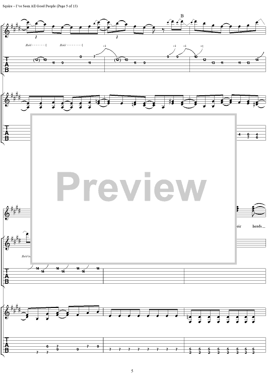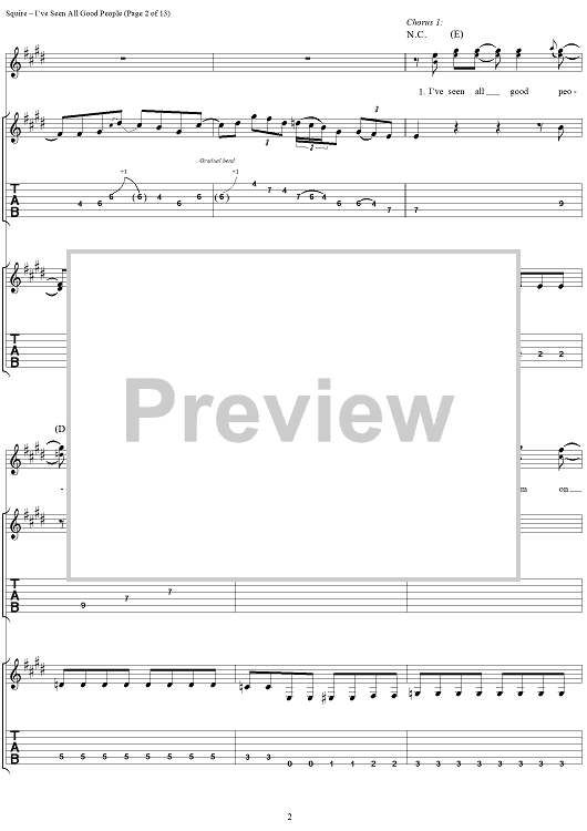 Digital Sheet Music for I've Seen All Good People (b. All Good People) by Yes, Chris Squire scored for Guitar Tab/Vocal; id:120061