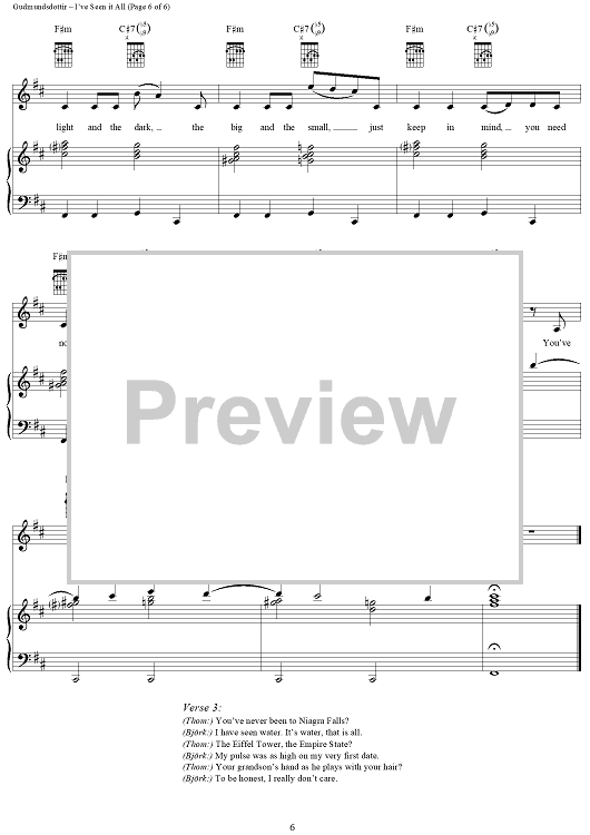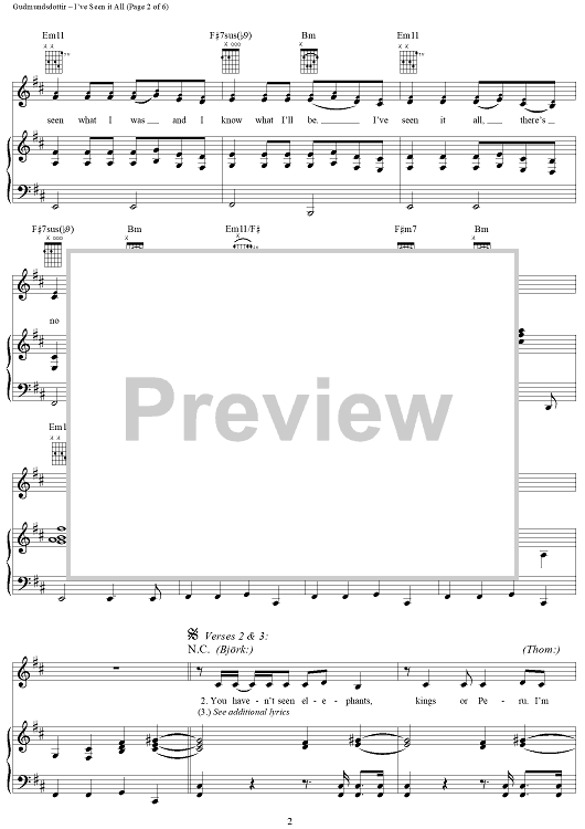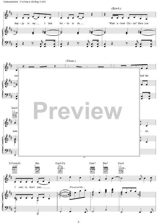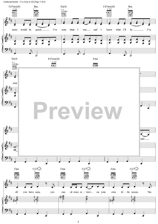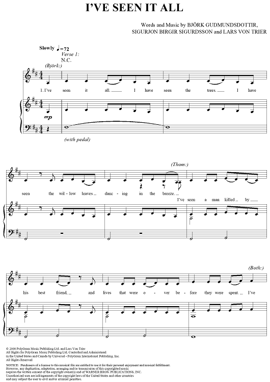 Digital Sheet Music for I've Seen It All by Sigurjon Birgir Sigurdsson, Lars von Trier, Björk scored for Piano/Vocal/Chords; id:283541