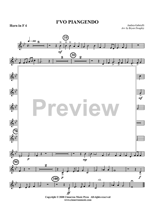 Digital Sheet Music for I'vo Piangendo - Horn in F 4 by , Bryan Doughty, Andrea Gabrieli scored for Horn Ensemble; id:417418
