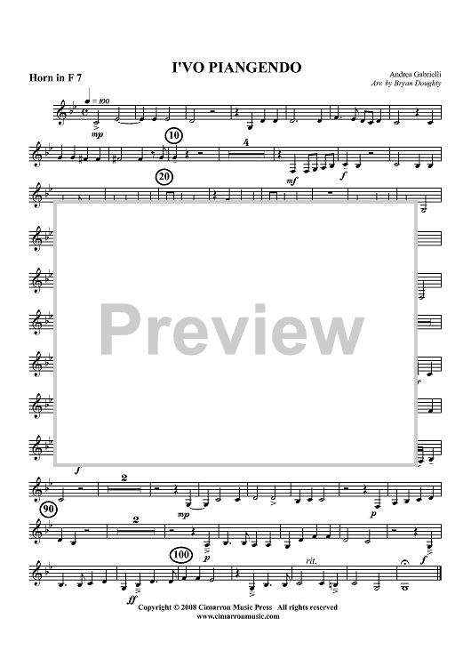 Digital Sheet Music for I'vo Piangendo - Horn in F 7 by , Bryan Doughty, Andrea Gabrieli scored for Horn Ensemble; id:417421