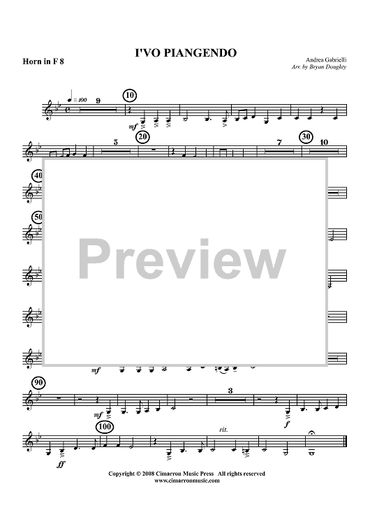 Digital Sheet Music for I'vo Piangendo - Horn in F 8 by , Bryan Doughty, Andrea Gabrieli scored for Horn Ensemble; id:417422