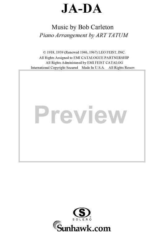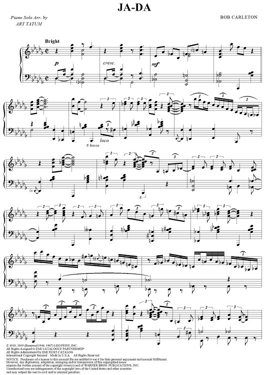 Digital Sheet Music for Ja-Da by Art Tatum, Bob Carleton scored for Piano Solo; id:112160