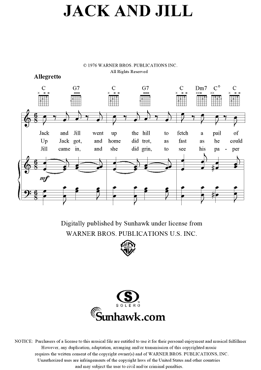Digital Sheet Music for Jack and Jill by scored for Piano/Vocal/Chords; id:116209