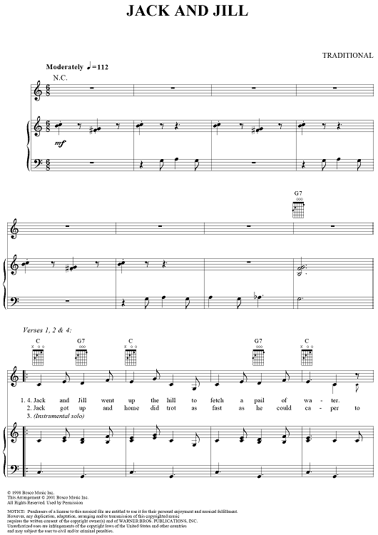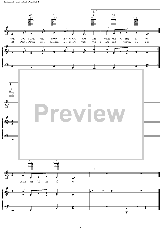 Digital Sheet Music for Jack and Jill by Traditional scored for Piano/Vocal/Chords; id:289063