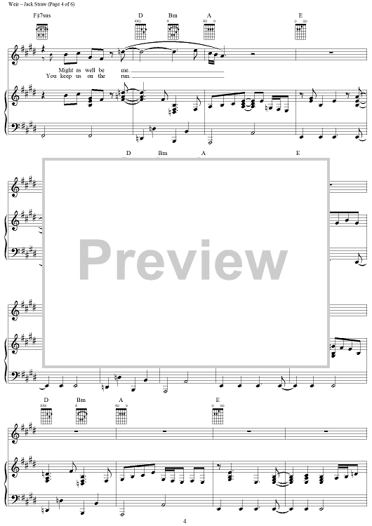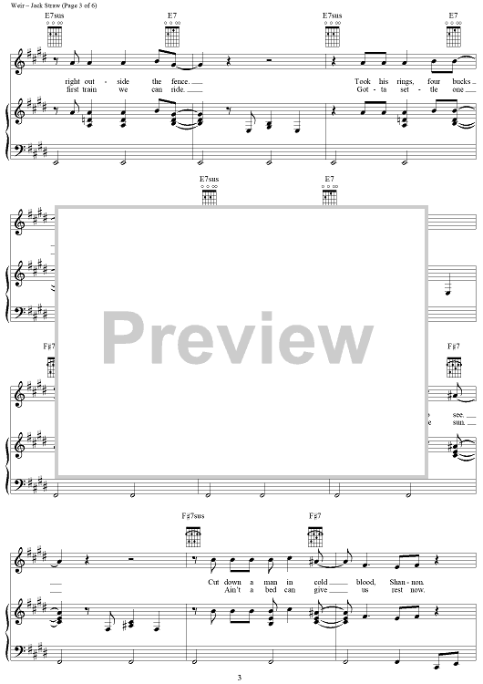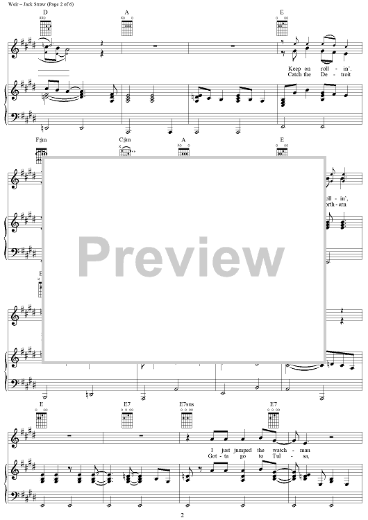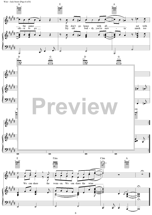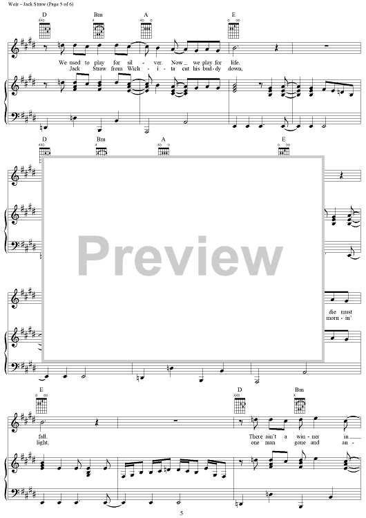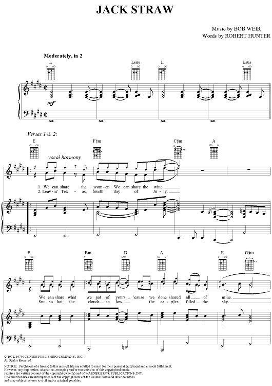 Digital Sheet Music for Jack Straw by Robert Hunter, Bob Weir, Grateful Dead scored for Piano/Vocal/Chords; id:264324