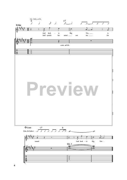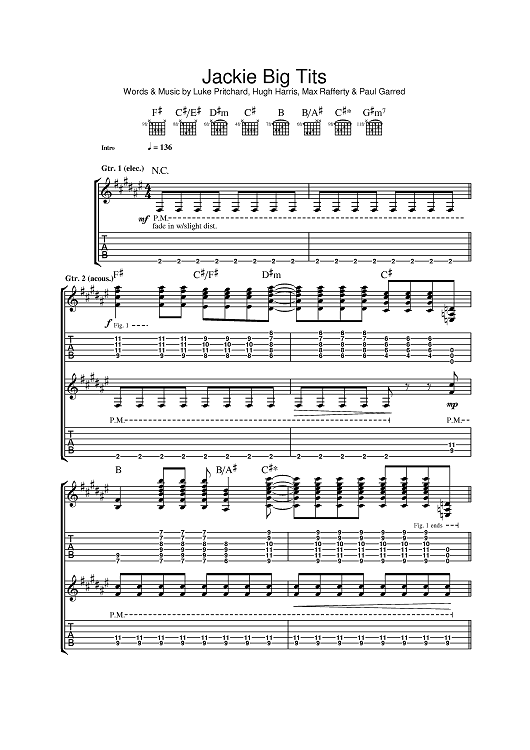 Digital Sheet Music for Jackie Big Tits by Paul Garred, Hugh Harris, The Kooks, Luke Pritchard, Max Rafferty scored for Guitar Tab; id:391416
