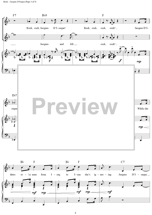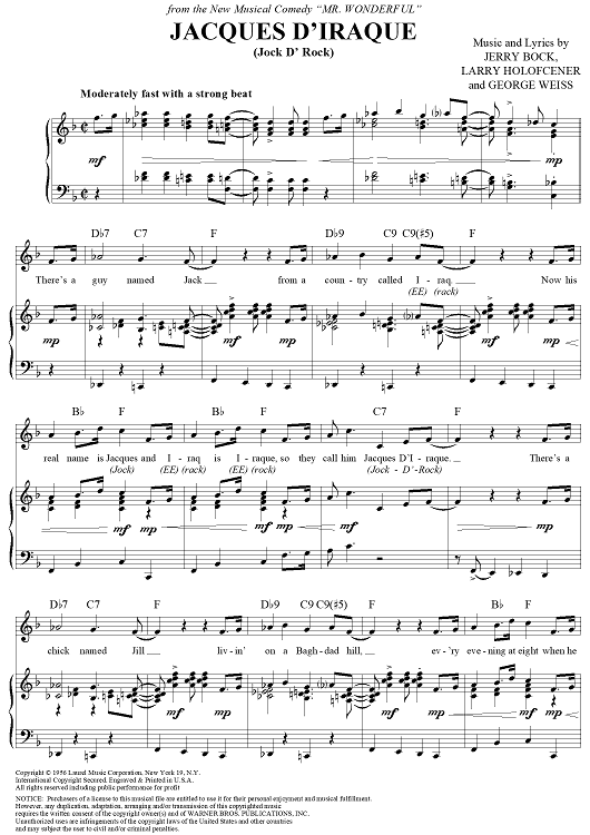 Digital Sheet Music for Jacques D'Iraque by George Weiss, Jerry Bock, Larry Holofcener scored for Piano/Vocal/Chords; id:315082