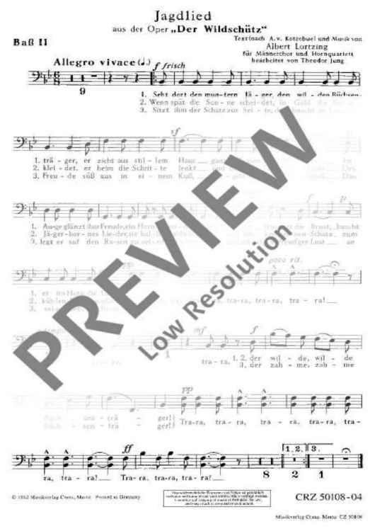 "Jagdlied - Bass Ii" Sheet Music by Albert Lortzing