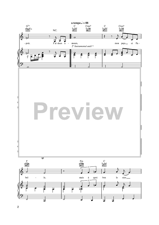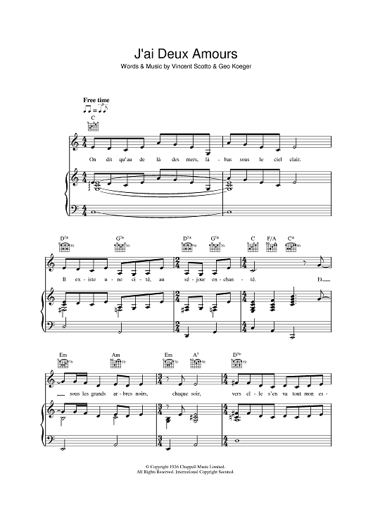 Digital Sheet Music for J'ai Deux Amours by Madeleine Peyroux, Geo Koeger, Vincent Scotto scored for Piano/Vocal/Chords; id:394692