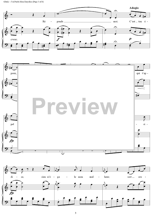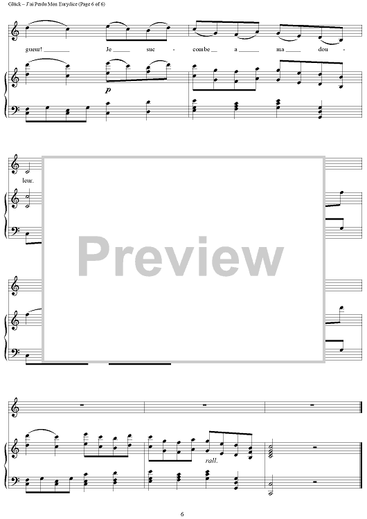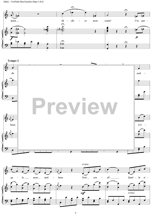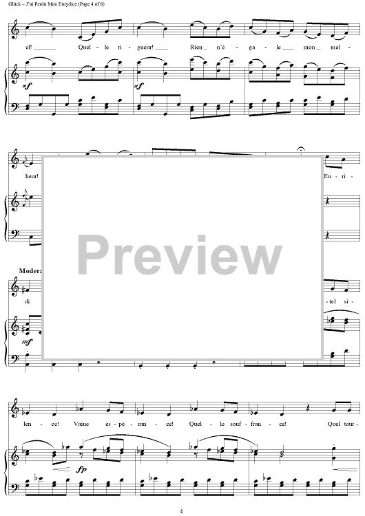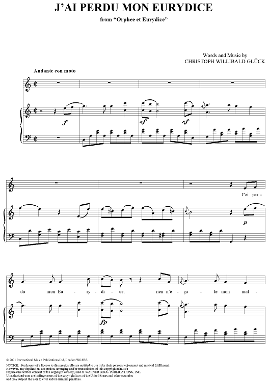 Digital Sheet Music for J'ai Perdu Mon Eurydice by Maria Callas, Christoph Willibald Glück scored for Voice/Piano; id:285571