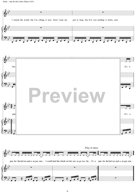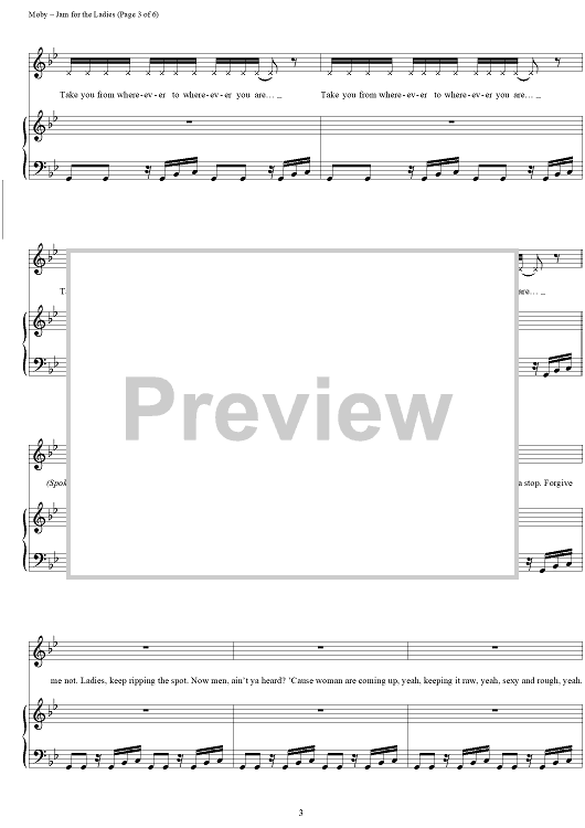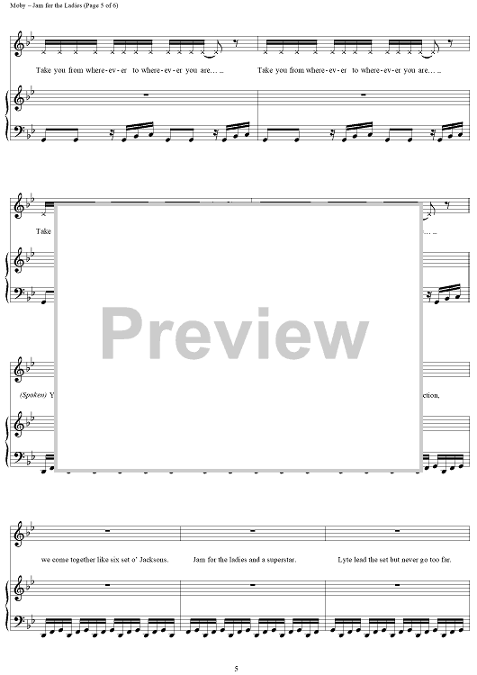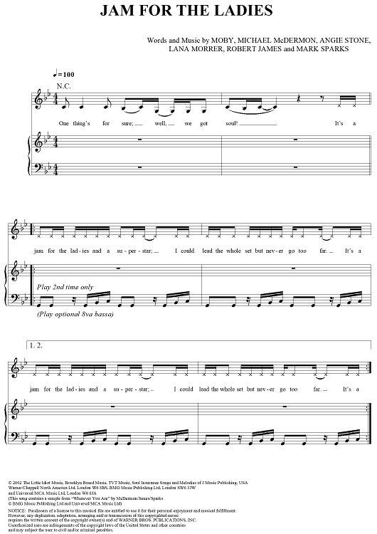 Digital Sheet Music for Jam for the Ladies by Angie Stone, Moby, Michael McDermon, Lana Morrer, Robert James, Mark Sparks scored for Piano/Vocal/Chords; id:293242