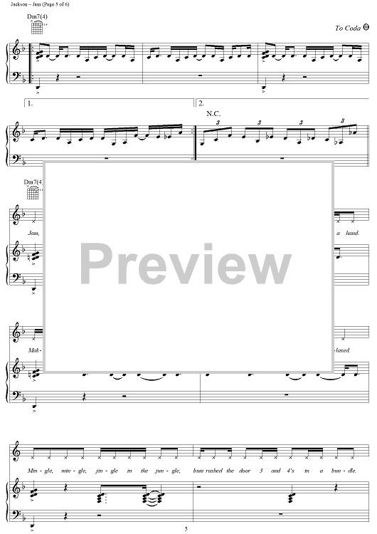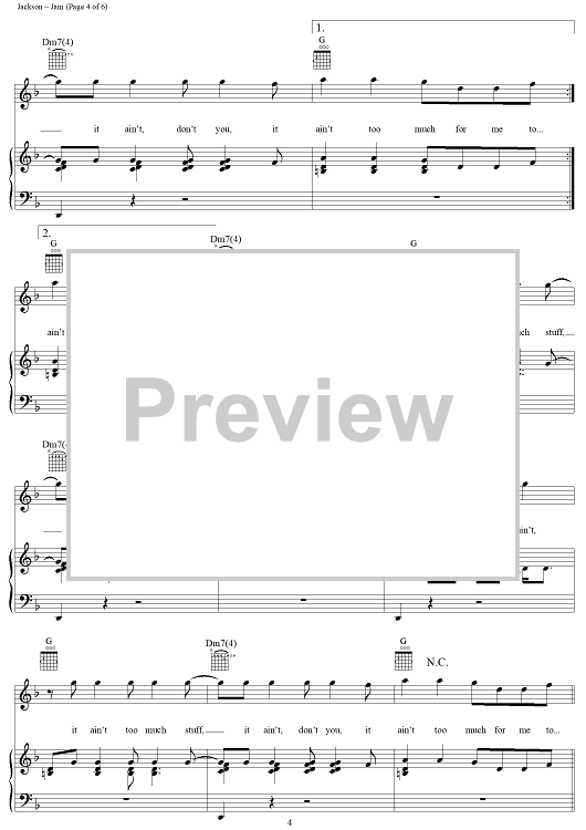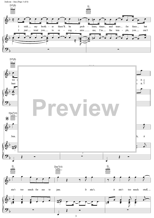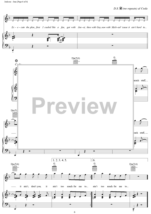 Digital Sheet Music for Jam by Michael Jackson, Teddy Riley, Bruce Swedien, Rene Moore scored for Piano/Vocal/Chords; id:206967