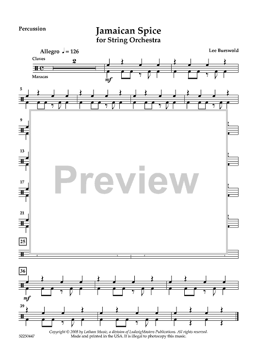 Digital Sheet Music for Jamaican Spice - Percussion by Lee Burswold scored for String Orchestra; id:458392