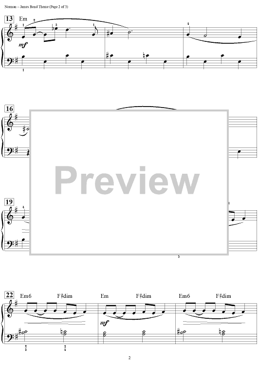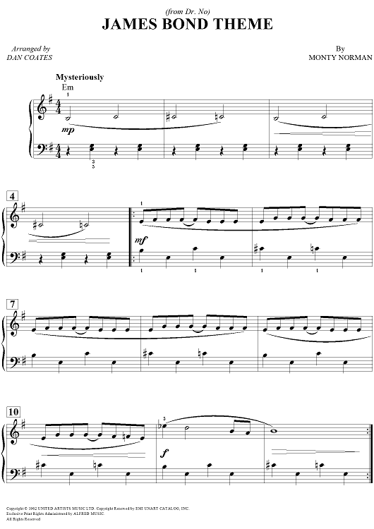 Digital Sheet Music for James Bond Theme by Dan Coates, Monty Norman scored for Easy Piano; id:452143