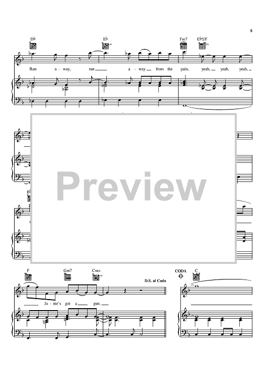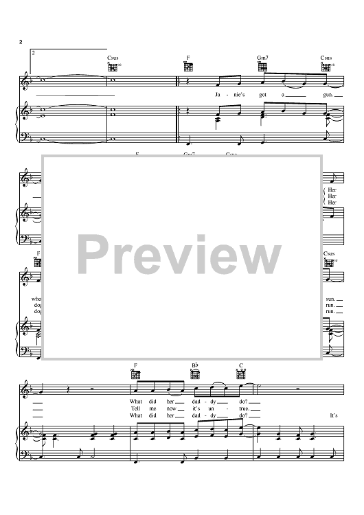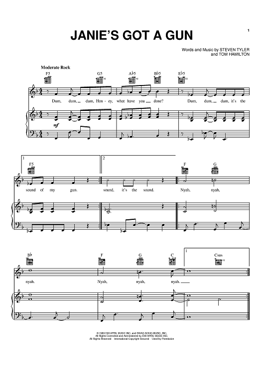 Digital Sheet Music for Janie's Got A Gun by Aerosmith, Steven Tyler, Tom Hamilton scored for Piano/Vocal/Chords; id:369886
