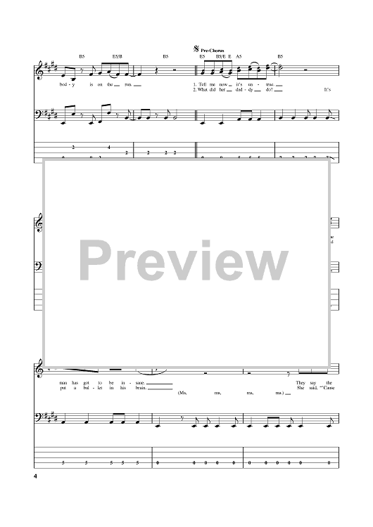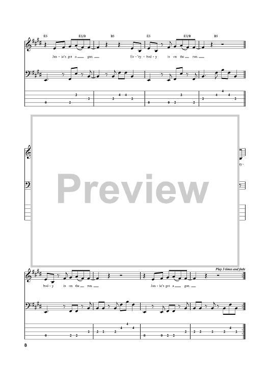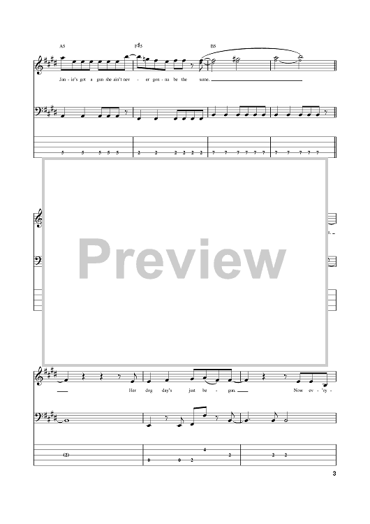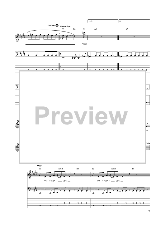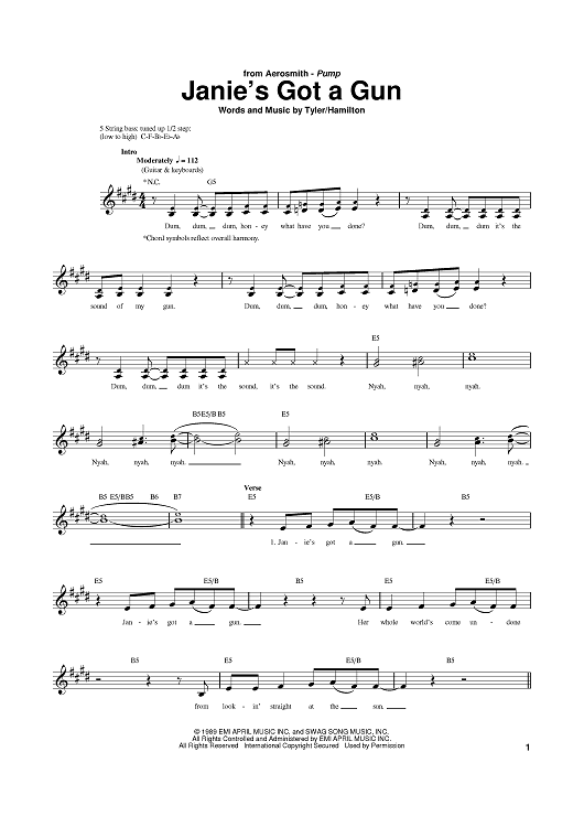Digital Sheet Music for Janie's Got A Gun by Aerosmith, Steven Tyler, Tom Hamilton scored for Bass Tab; id:381486