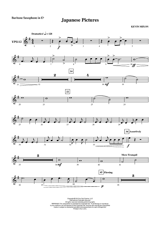 "Japanese Pictures - Baritone Sax" Sheet Music by Kevin Mixon