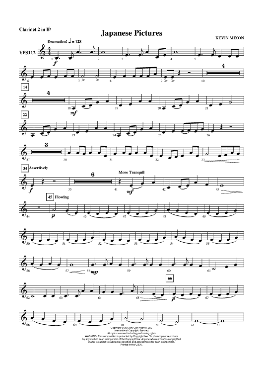 "Japanese Pictures - Clarinet 2 in Bb" Sheet Music by Kevin Mixon