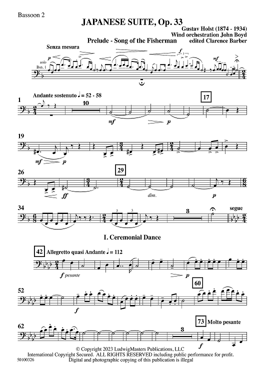 Digital Sheet Music for Japanese Suite, Op. 33 - Bassoon 2 by John Boyd, Gustav Holst scored for Symphonic Band; id:509943