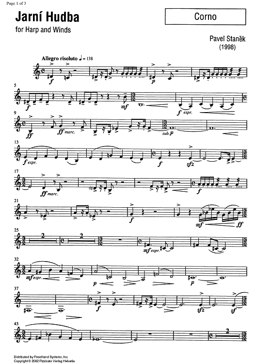 "Jarní Hudba (Spring music) - Horn" Sheet Music by Pavel Stanek